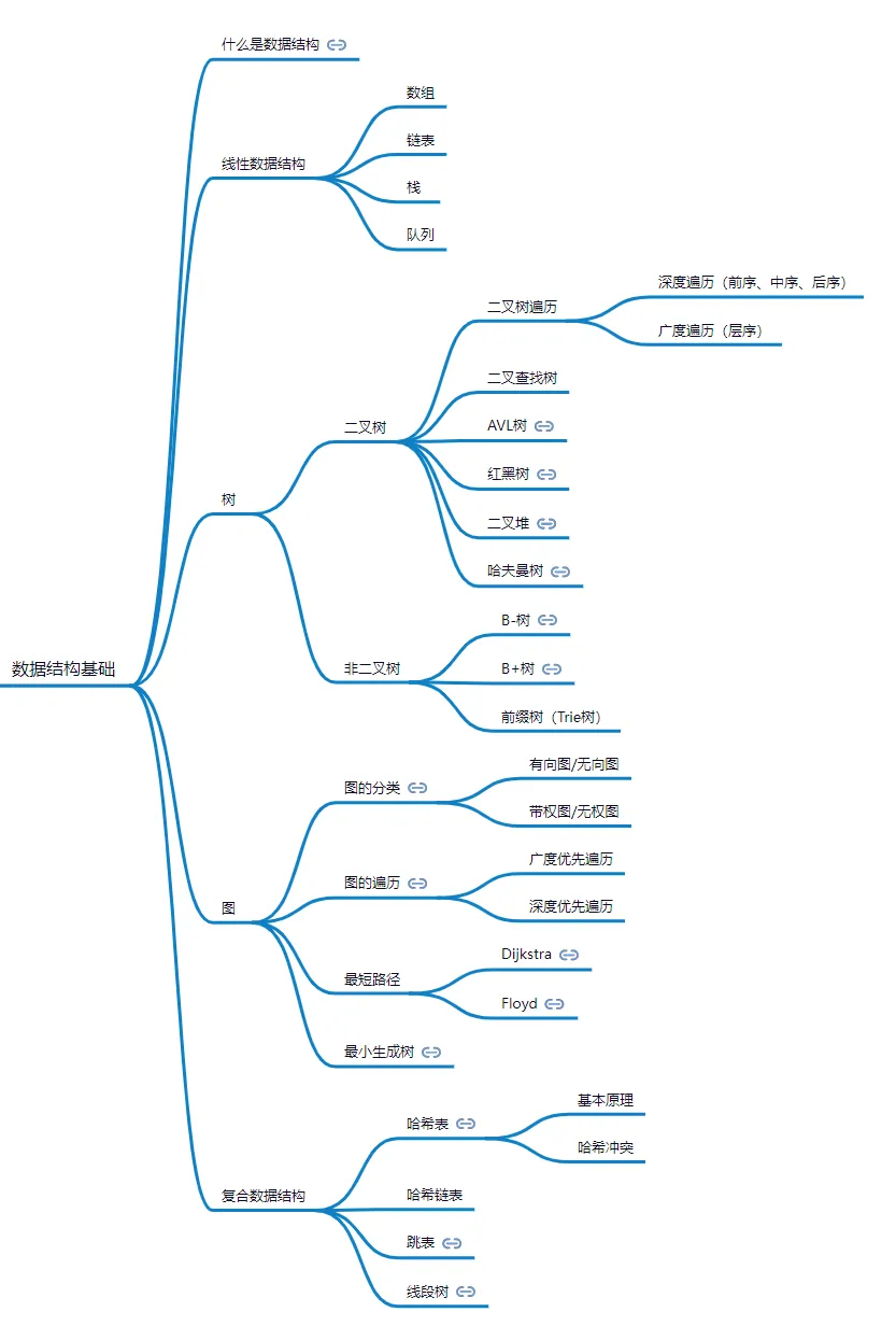 树结构(二叉树:红黑树、AVL树,非二叉树:一般文件系统所使用的B-树,关系型数据库使用的索引结构B+树,用于数据压缩的哈夫曼树)
