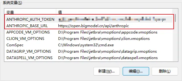 $Env:ANTHROPIC_AUTH_TOKEN="your_zhipu_api_key"相当于直接在系统环境变量配置: