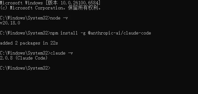 执行 claude -v,如果输出版本号,代表安装成功!