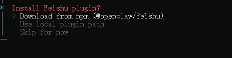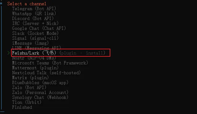 如果完成配置时报错,可以执行以下命令重新安装飞书插件进行配置: