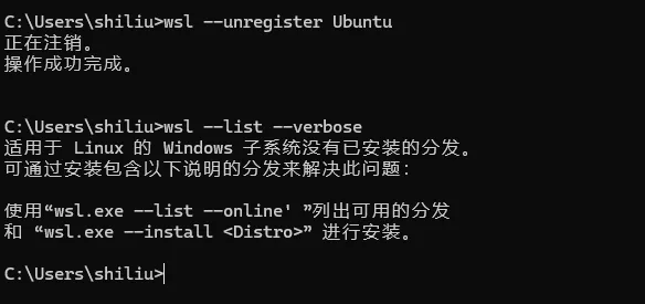 执行完毕后可执行 wsl -v 确认 wsl 是否已经成功删除